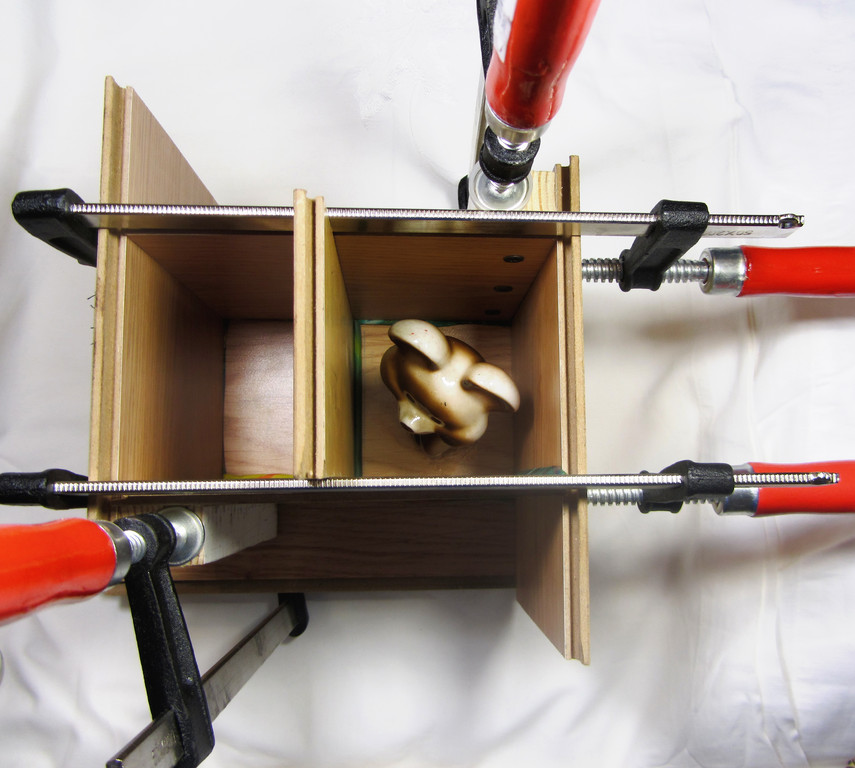 Нам нравятся остатки акрила, так как они прозрачные, все видно. Можно сделать универсальную опалубку в виде двух уголков с креплением струбциной.